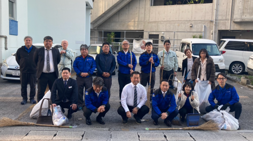 私たちのスタートは、毎年恒例となっている「朝のボランティア清掃」から始まりました。仕事始めの慌ただしい時期ではありますが、今年も多くの社員が参加し、会社周辺の道路や歩道、植え込み周辺などを手分けして清掃しました。