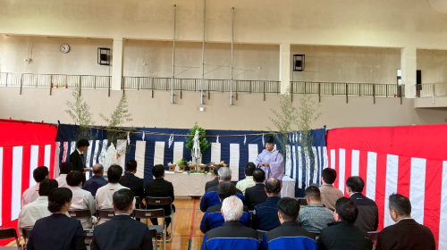 先日、体育館改装工事にあたり「安全祈願祭」を執り行いました。